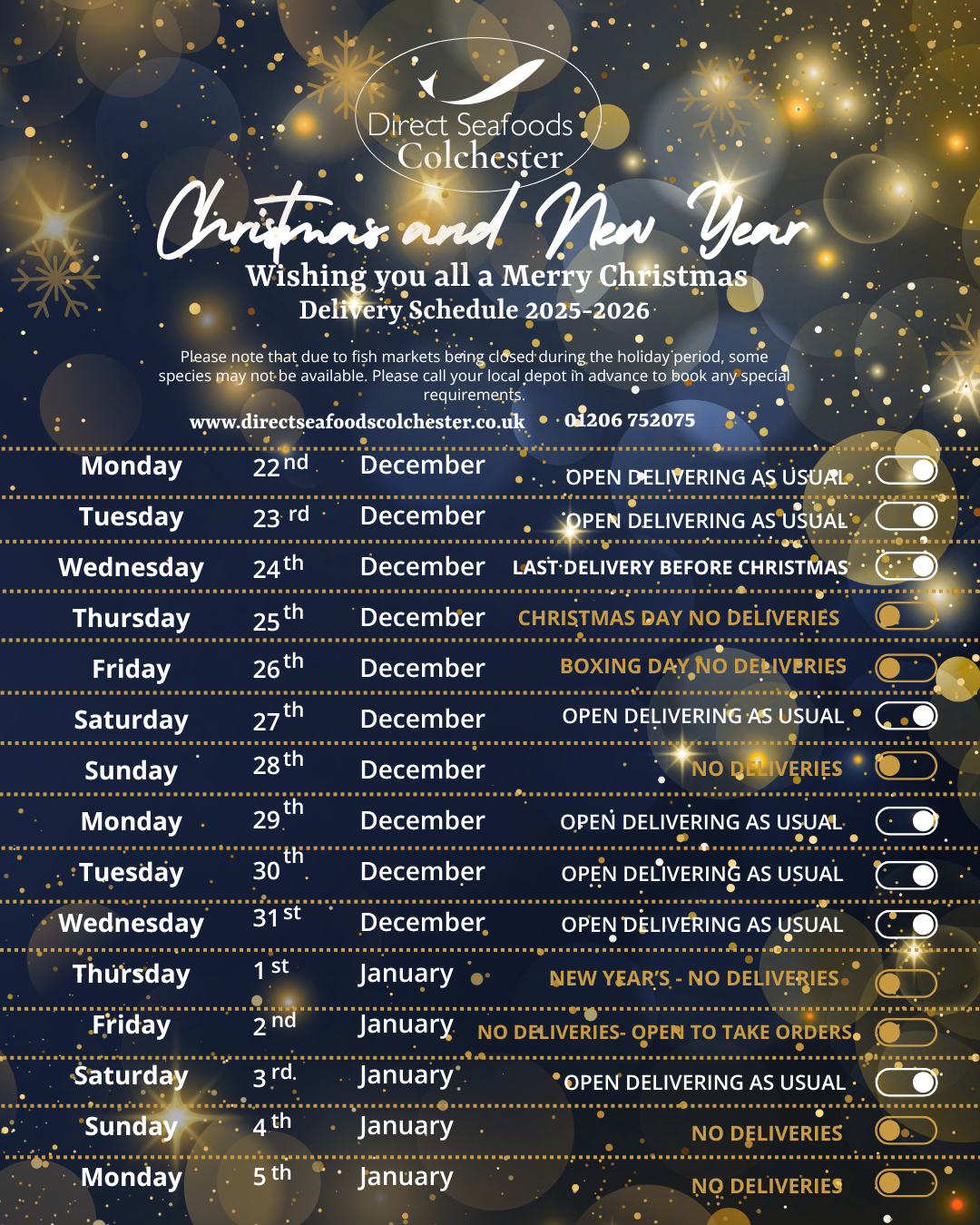 Christmas is fast approaching and it’s the perfect time to share our festive delivery schedule. Please be aware that fish